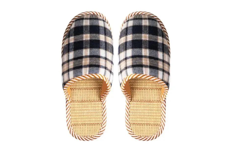 2.尽量选择无空洞设计、一体成型的 EVA 拖鞋。可以试着在不需要和水接触的时候,选择透气性和吸湿性更好的亚麻拖鞋。