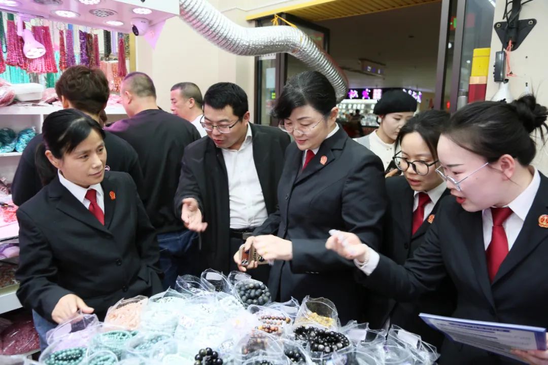 会后,连云港开发区法院党组成员、政治部主任孙伟带领干警走访了东海水晶城内多家水晶、穿戴甲商户,调研知识产权保护情况。