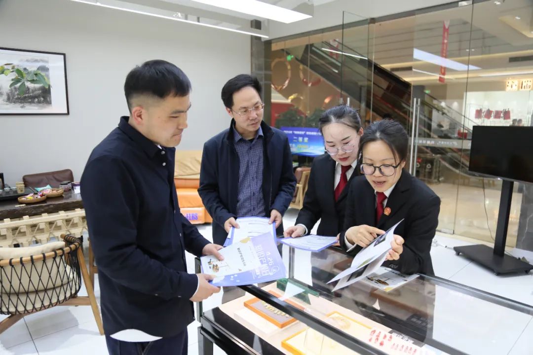 法院干警还通过发放宣传册的方式以案说法,向商户和过往群众介绍侵犯知识产权行为有哪些以及需要承担什么法律责任等知识。
