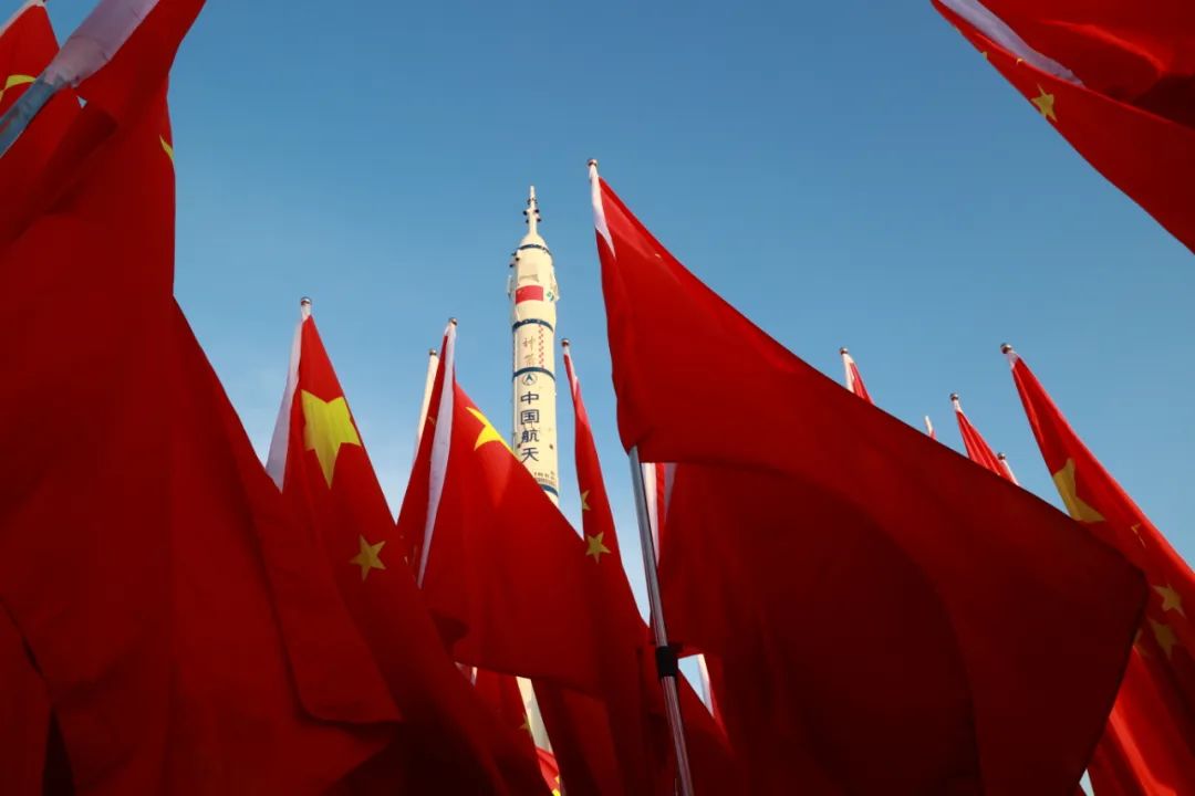 “我和我的祖国......”参观区时不时传来的阵阵歌声和科技人员的铮铮誓言响彻发射场上空。看,逃逸塔上方盘旋着几只喜鹊,发射场的盛事引得它们也来欢呼雀跃。
