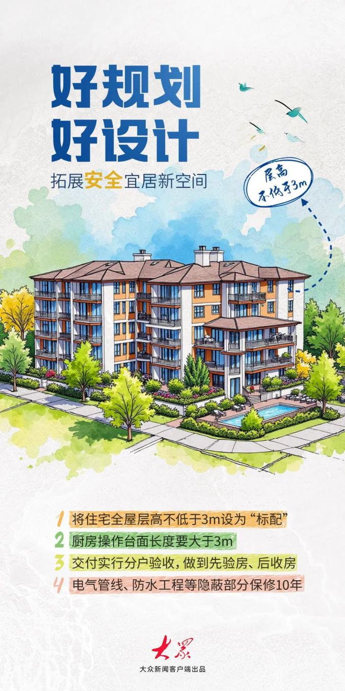 “《指引》包括总则、基本规定等7个部分、共112条,力求用新空间、新场景、新体验、新样板兑现‘好房子’承诺,是一份从‘有房住’向‘住好房’跨越的品质指南。”山东省住房和城乡建设厅党组书记任海涛表示。