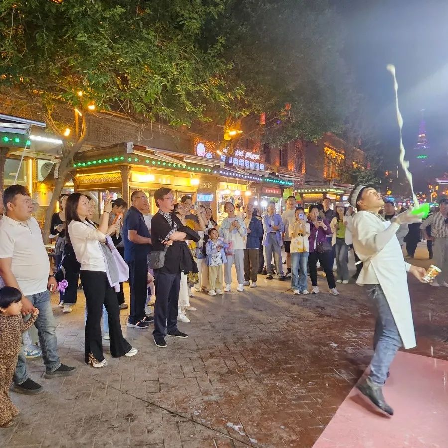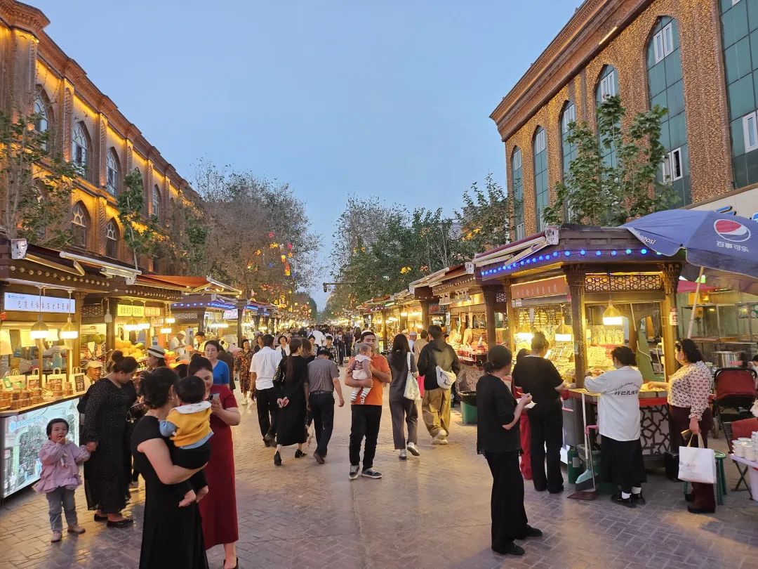沈阳游客郭晓玉说:“太热闹了!这是我第一次来喀什,走进夜市,瞬间被扑面而来的欢声笑语和浓郁烟火气震撼。闻着羊肉串、烤包子的香味,就走不动道了!和闺蜜一边品尝美食,一边畅谈旅行见闻,在这充满人间烟火的夜市里,感受着前所未有的治愈。”