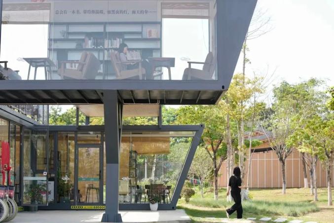 读者在南岸驿站·粤书吧二楼看书。清远日报记者 李思靖 摄