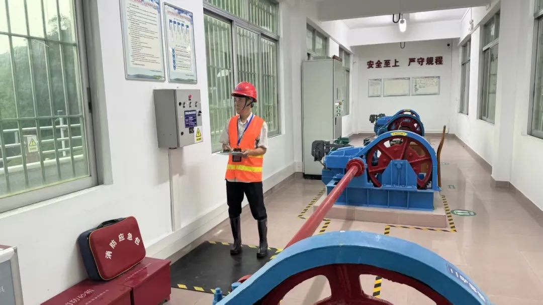 眼看手摸查隐患。他每周定期对溢洪道闸门、铰链等进行全方位检查,发现锈斑立即打磨并补涂环氧树脂防锈漆。同时,溢洪道闸门启闭前均会爬上约3米高的闸门涂抹肥皂水,从而减缓了溢洪道闸门橡胶止水带老化问题。