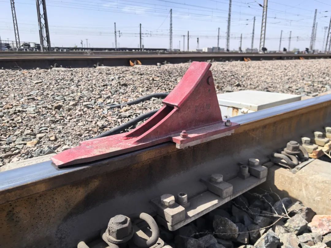 调车长赵凯一声令下,股道内侧的4台电动设备缓缓抬升,动力装置推动制动轨紧紧“咬”住车轮。这是包头西站的又一防溜法宝——峰尾可控停车器。