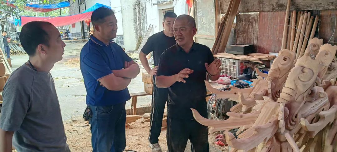 眼下,离我市传统划龙舟的日子越来越近了,造(修)龙舟进入关键时期,与传统龙舟配套的龙头(包括龙尾)、龙旗、龙舟鼓等零部件的销售也迎来旺季。5月3日,市民间文艺家协会组织会员走进南滨街道,深入调研传统龙头、缆绳制作技艺和销售情况,挖掘瑞安龙舟文化的深厚底蕴与独特魅力,助力龙舟产业发展。