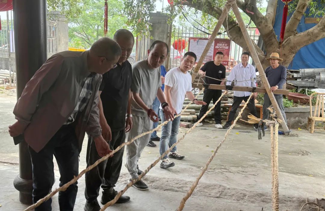 在编织现场,8位缆绳制作师傅正有条不紊地将3条细竹绳精心编织成一条粗壮的龙舟缆绳。不少参与调研的民间文艺家纷纷表示,此前从未目睹龙舟缆绳的编织过程,此次调研让他们深刻认识到一条缆绳的诞生需历经多道复杂工序,这不仅是一项技术要求极高的工作,更是一份耗费体力的苦力活。