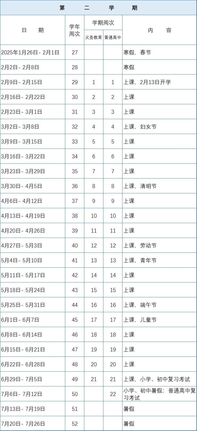 全日制普通中小学校校历