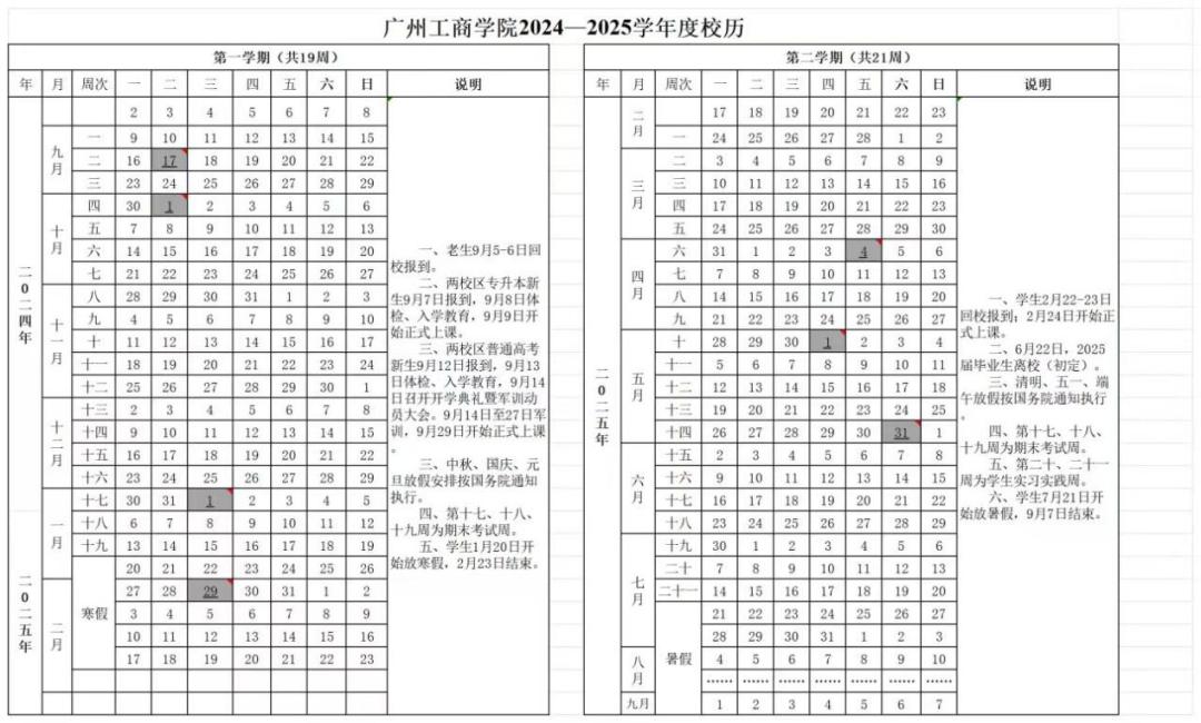 佛山2024-2025学年校历