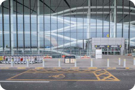 靠近航站楼出入口的落客区设置无障碍机动车停车位