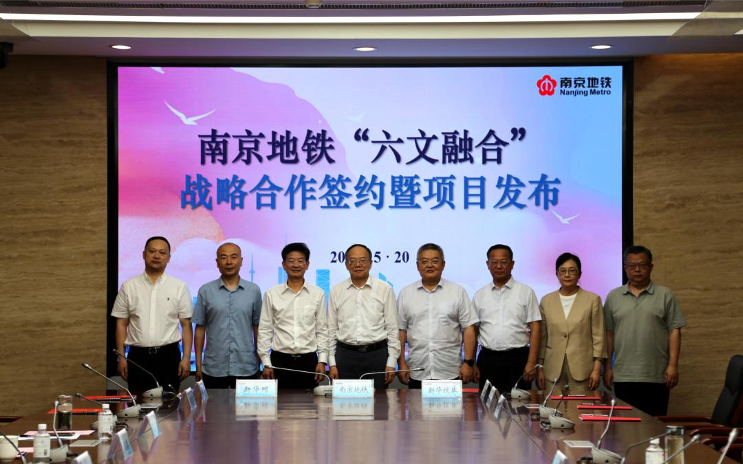 5月20日,南京地铁“六文融合”战略合作协议签约暨项目发布会在地铁大厦举办。南京地铁集团与新华报业传媒集团、新华网江苏有限公司、南京市档案馆、南京报业传媒集团、南京广播电视集团、南京市文投集团、南京市博物总馆等七家单位现场签约,携手共绘南京轨道交通文化建设美好蓝图,共同见证南京地铁文化品牌建设迈入全新发展和生态共建阶段。