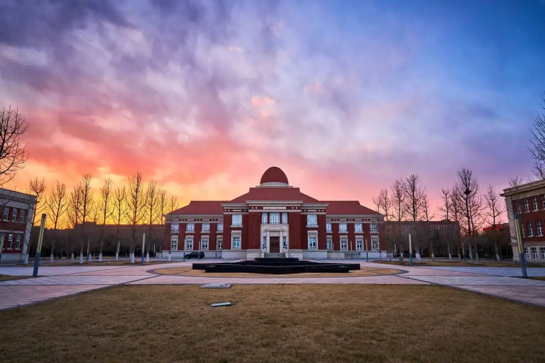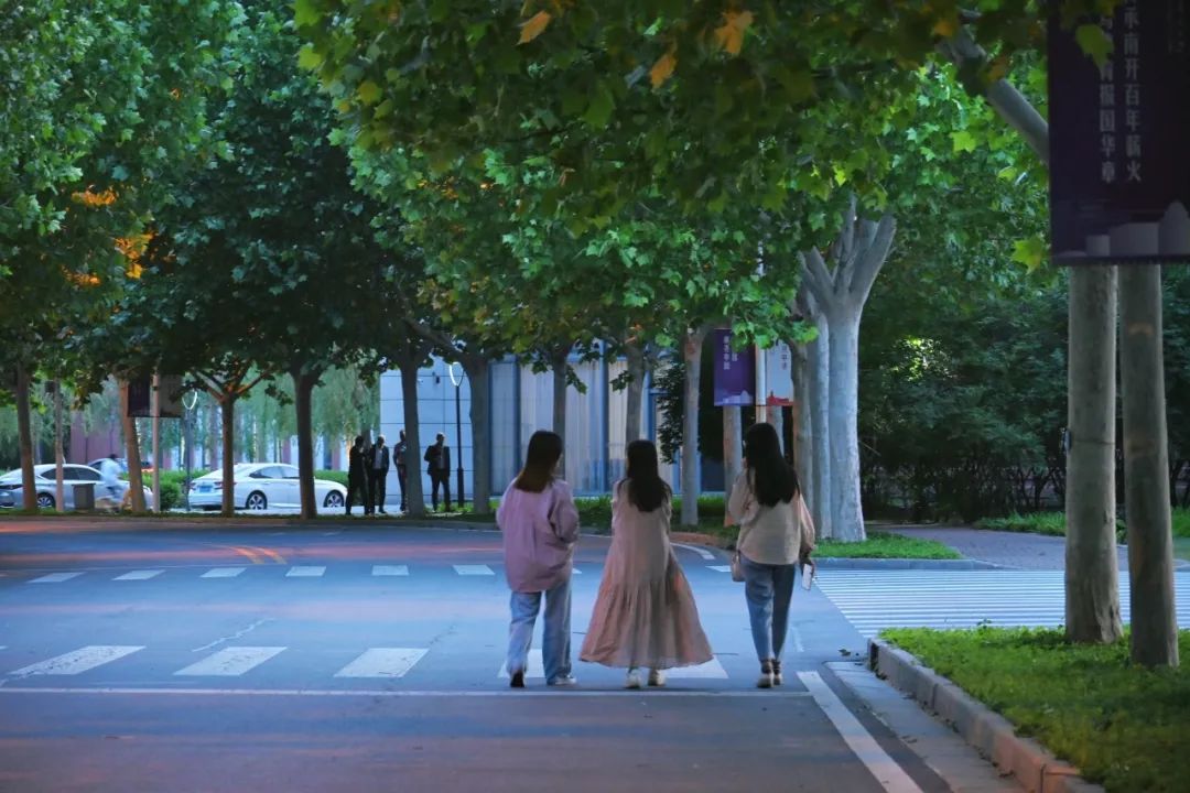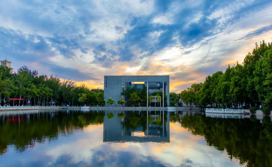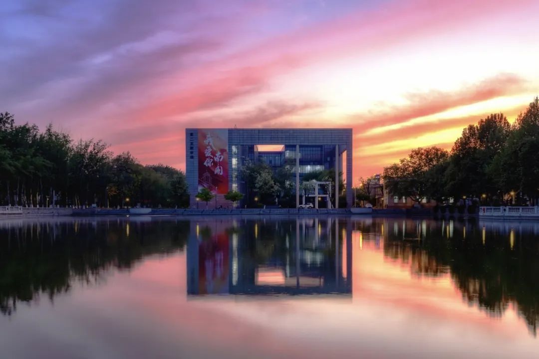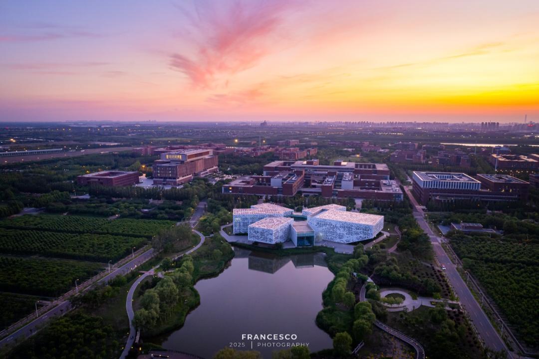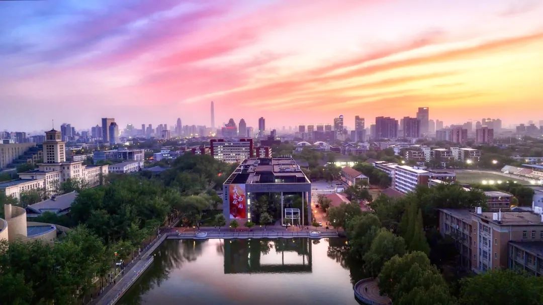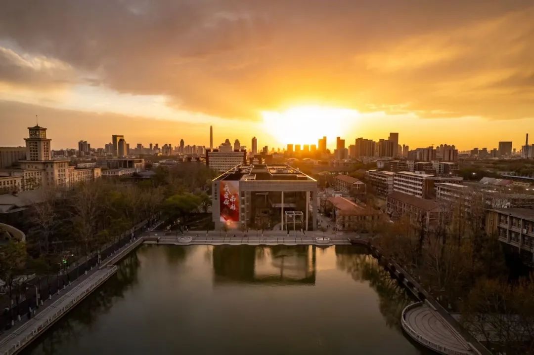 此刻的津南校区,无人机掠过镜湖,公共教学楼的落地窗把火烧云切割成几何诗篇,中心图书馆的穹顶成为最虔诚的捕光网。