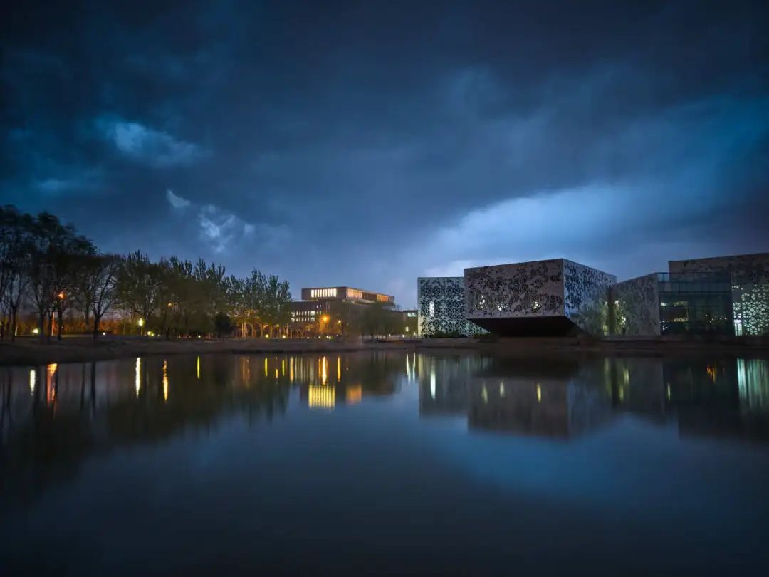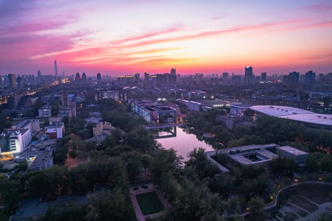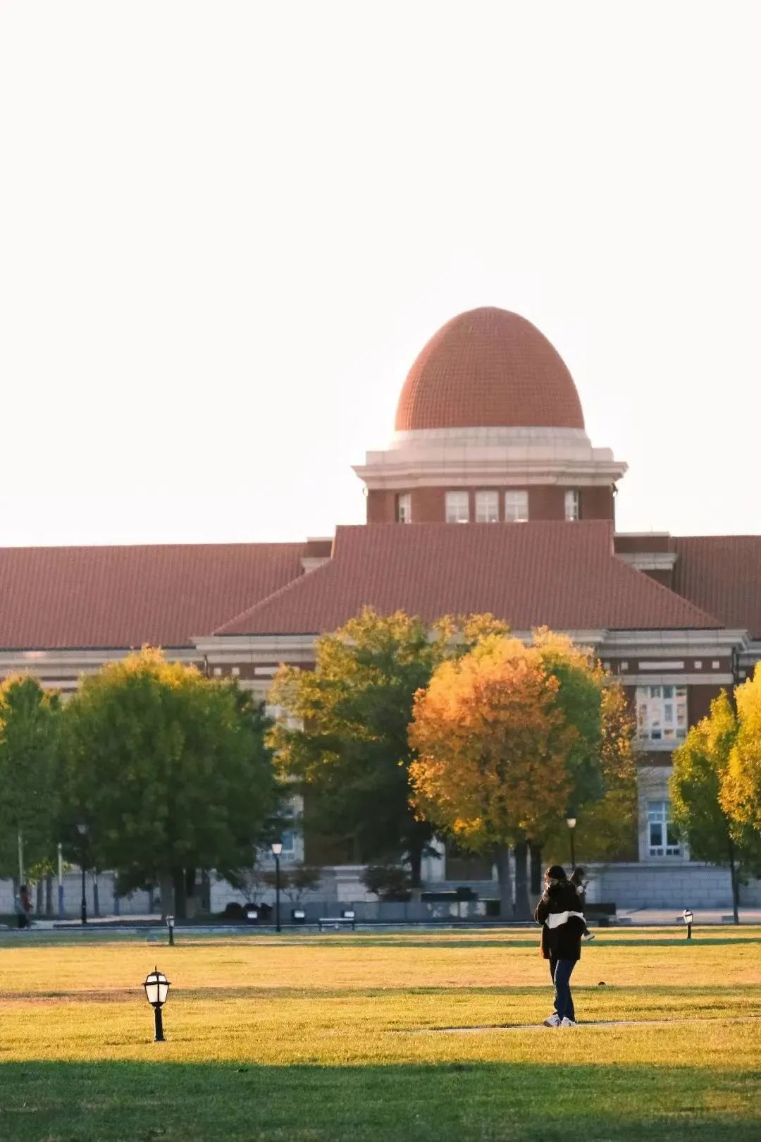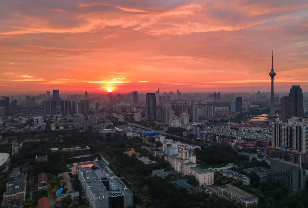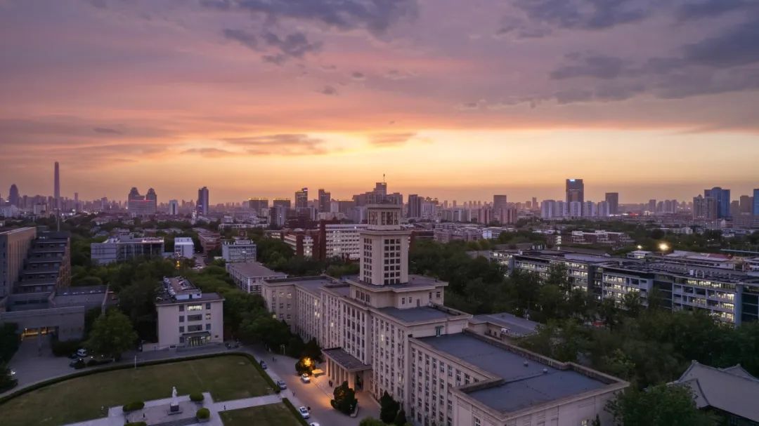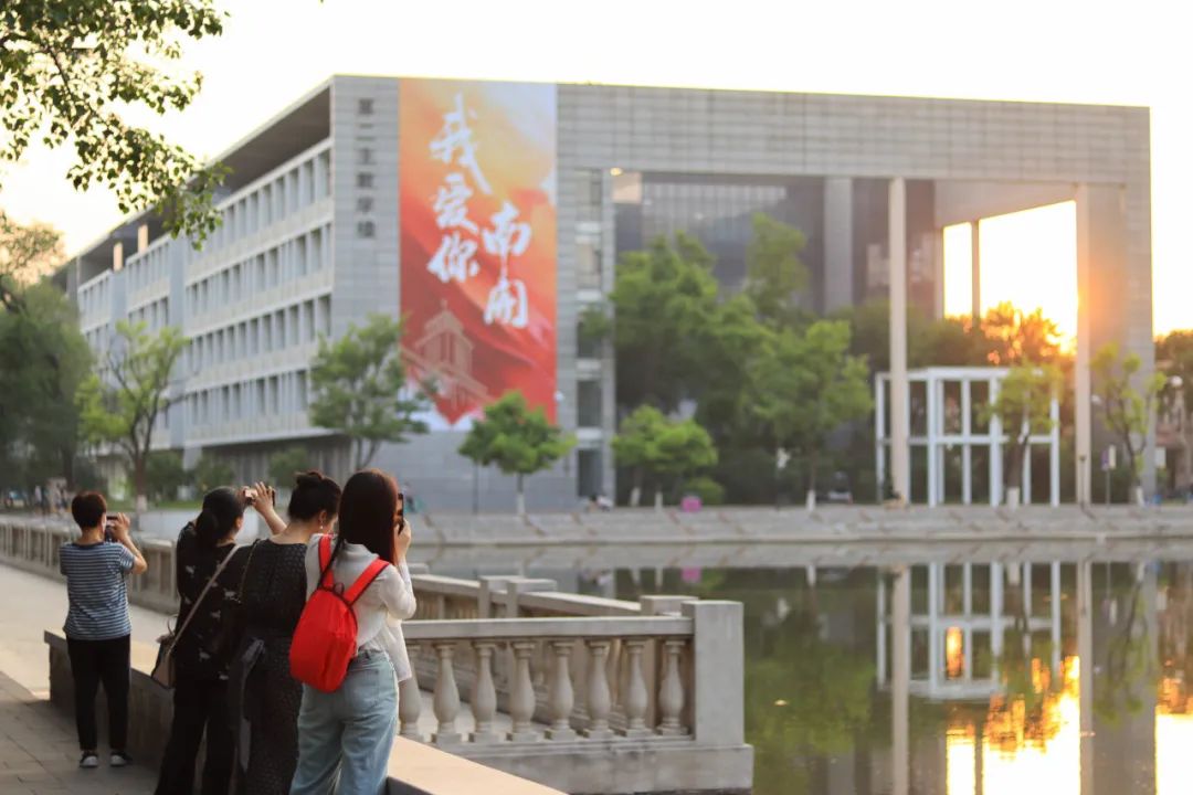 此刻的津南校区,无人机掠过镜湖,公共教学楼的落地窗把火烧云切割成几何诗篇,中心图书馆的穹顶成为最虔诚的捕光网。