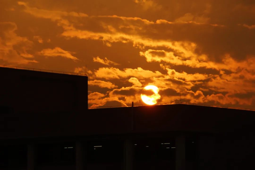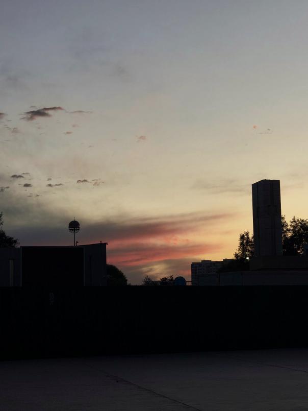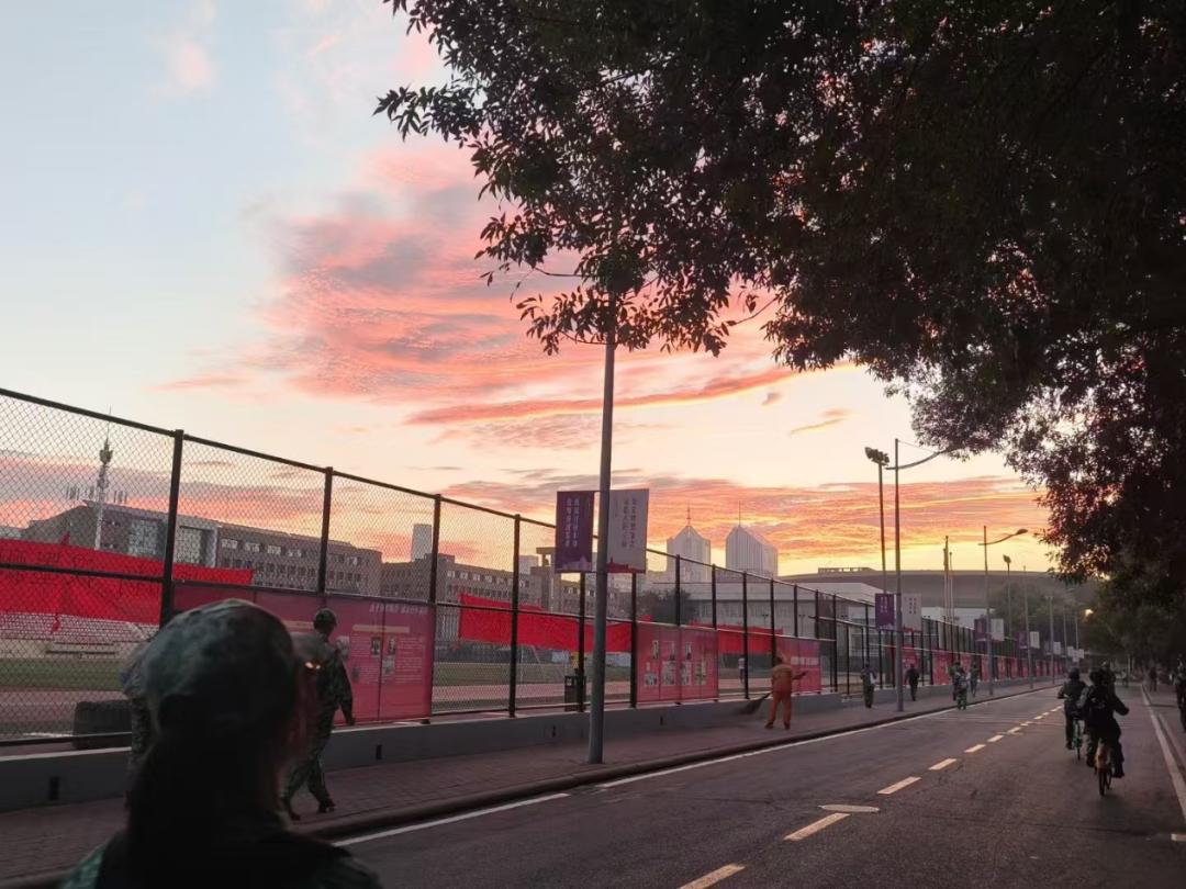 又想起史铁生在《我与地坛》中说,“但是太阳,他每时每刻都是夕阳也都是旭日”,我望着缓缓亮起的天空,也算是若有所思。也许军训的目的不只是军训本身,对于我而言,军训以外的空白无比珍贵,正如这朝霞……