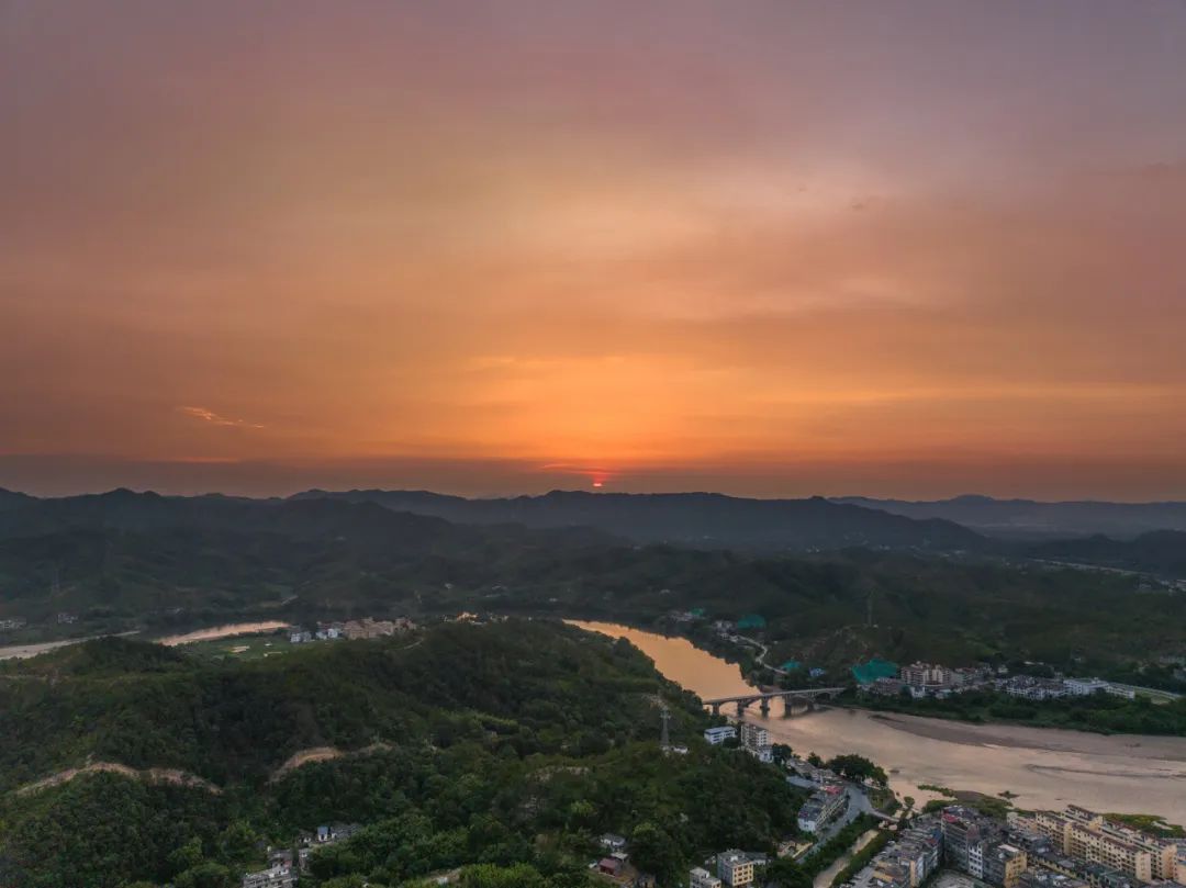 江西的晚霞总是出现的很突然,伴随着雨后特有的湿润的空气,傍晚太阳低垂,随着天边的云层从蓝灰色慢慢变成金色,一场晚霞突然而至。我用带来的无人机在操场上起飞,身旁簇拥着孩子们,拍下了美妙的夕阳。