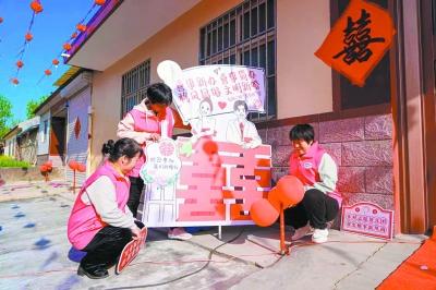 △帮喜团”成员为村民的婚礼进行装饰