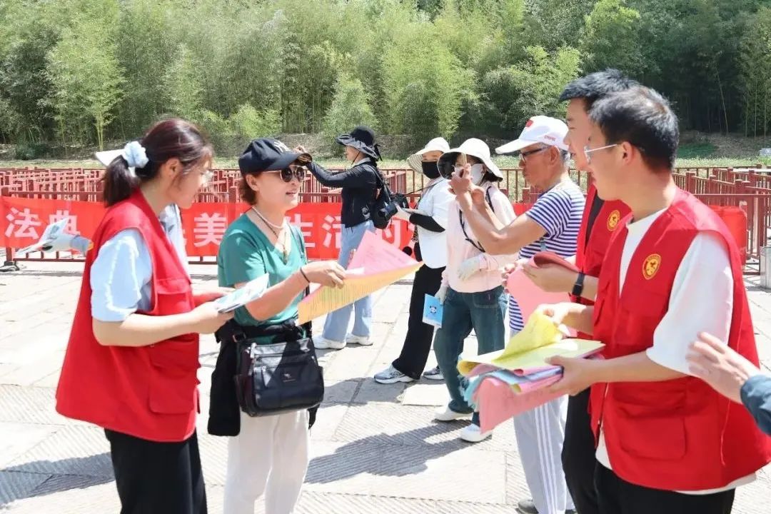 活动现场,工作人员穿梭于栈道亭阁间,在游客服务中心等场所悬挂宣传横幅,向往来游客及景区工作人员发放民法典手册。结合游客消费纠纷、景区安全保障等实际问题,以通俗语言解读旅游合同、消费者权益保护等法律知识,并对咨询疑问一一解答。“这样的普法活动真的很有意义,让我在旅行的同时还学习到了很多实用的法律知识。”一位来自云南的游客手持普法手册赞叹道。