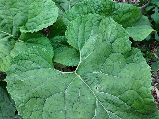互生单叶,叶宽,基部心形,两面异色,上面绿色。
