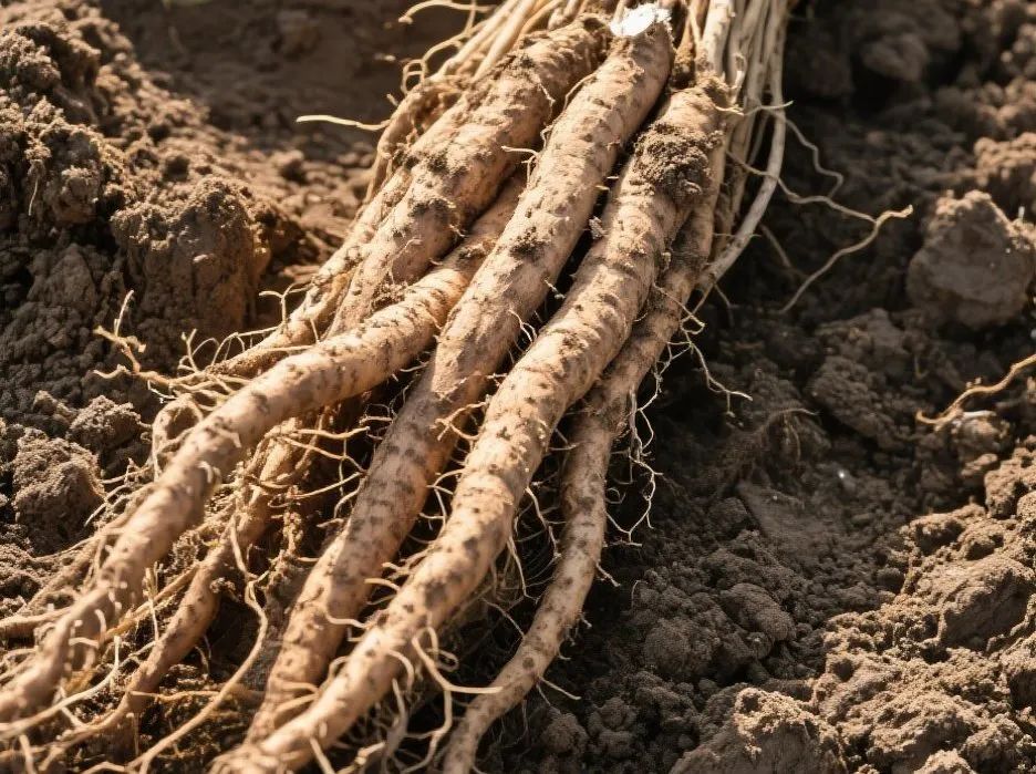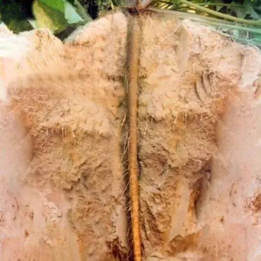 根茎粗壮,肉质淡黄色,散发淡淡药香,深可达1.5米。