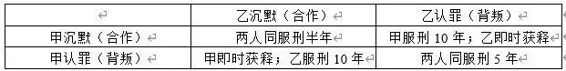 1.若你自己认罪并作证检控你的伙伴(我们将此行为定义为“背叛”),而你的伙伴保持沉默,那么作为证人你将即时获释,而你的伙伴将被判监10年。