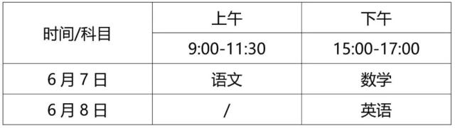 物理科目考试时间为6月9日8:00-9:30;思想政治科目考试时间为6月9日11:00-12:30;化学科目考试时间为6月9日15:30-17:00;历史科目考试时间为6月10日8:00-9:30;生物学科目考试时间为6月10日11:00-12:30;地理科目考试时间为6月10日15:30-17:00。