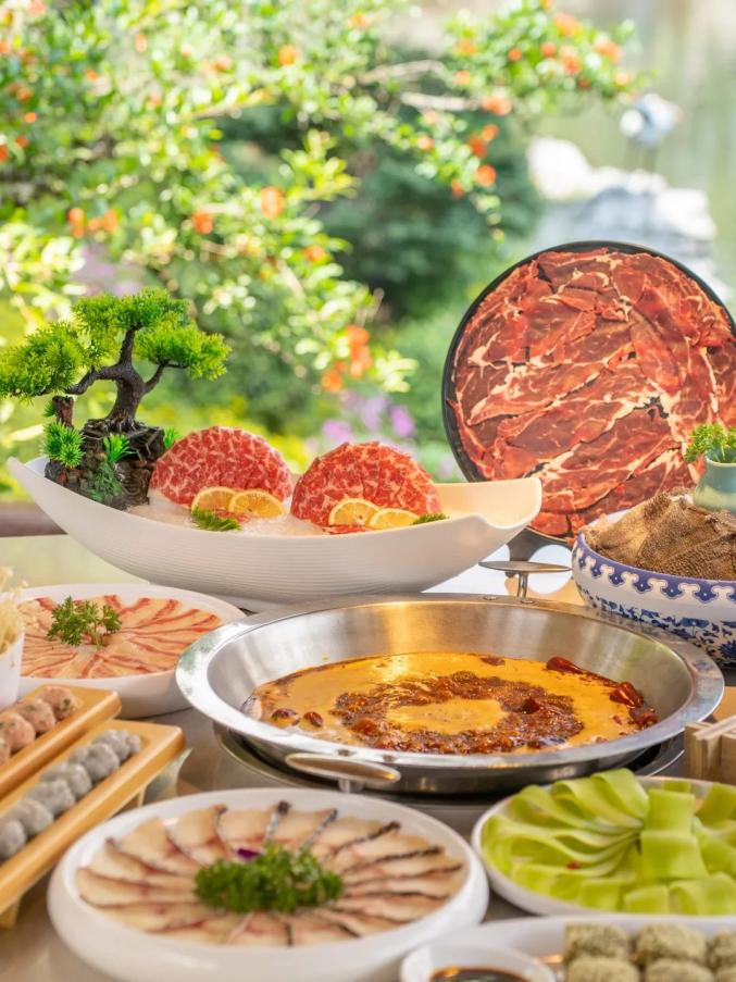 林水之间,犒赏味蕾。古今山林火锅公园树木葳蕤、古色古香,尤其适合家庭聚会、友人宴请。