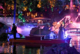 茅歌水韵湖畔生态火锅以“湖畔山水生态+声光演艺”为特色。