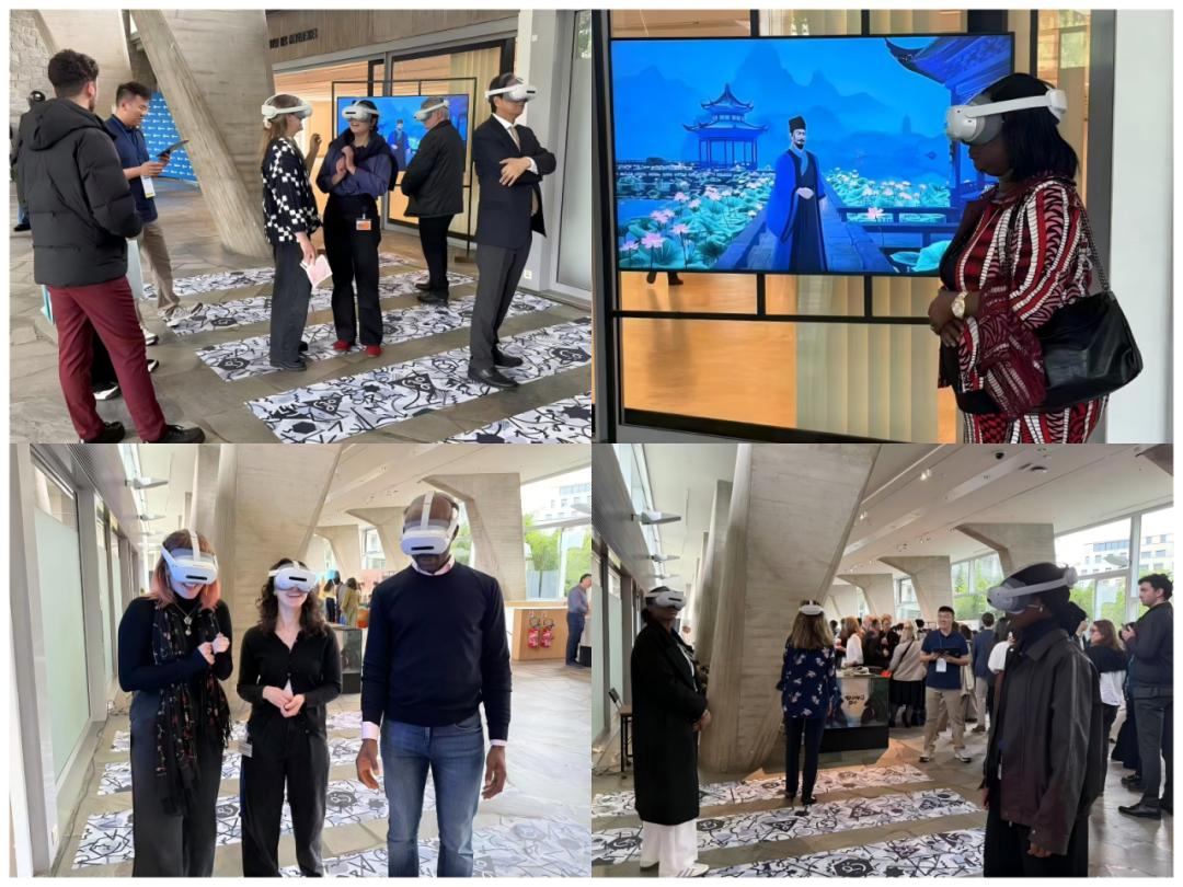 《遇见东坡》VR体验项目成为活动一大亮点。嘉宾佩戴VR设备,“穿越”至北宋汴京,在苏轼《赤壁赋》的吟诵声中,漫步汴河码头、参与文人雅集,甚至能够“亲手”研墨挥毫,沉浸式感受东坡笔下“人间至味是清欢”的诗意生活。该项目得到在场嘉宾的高度赞誉。