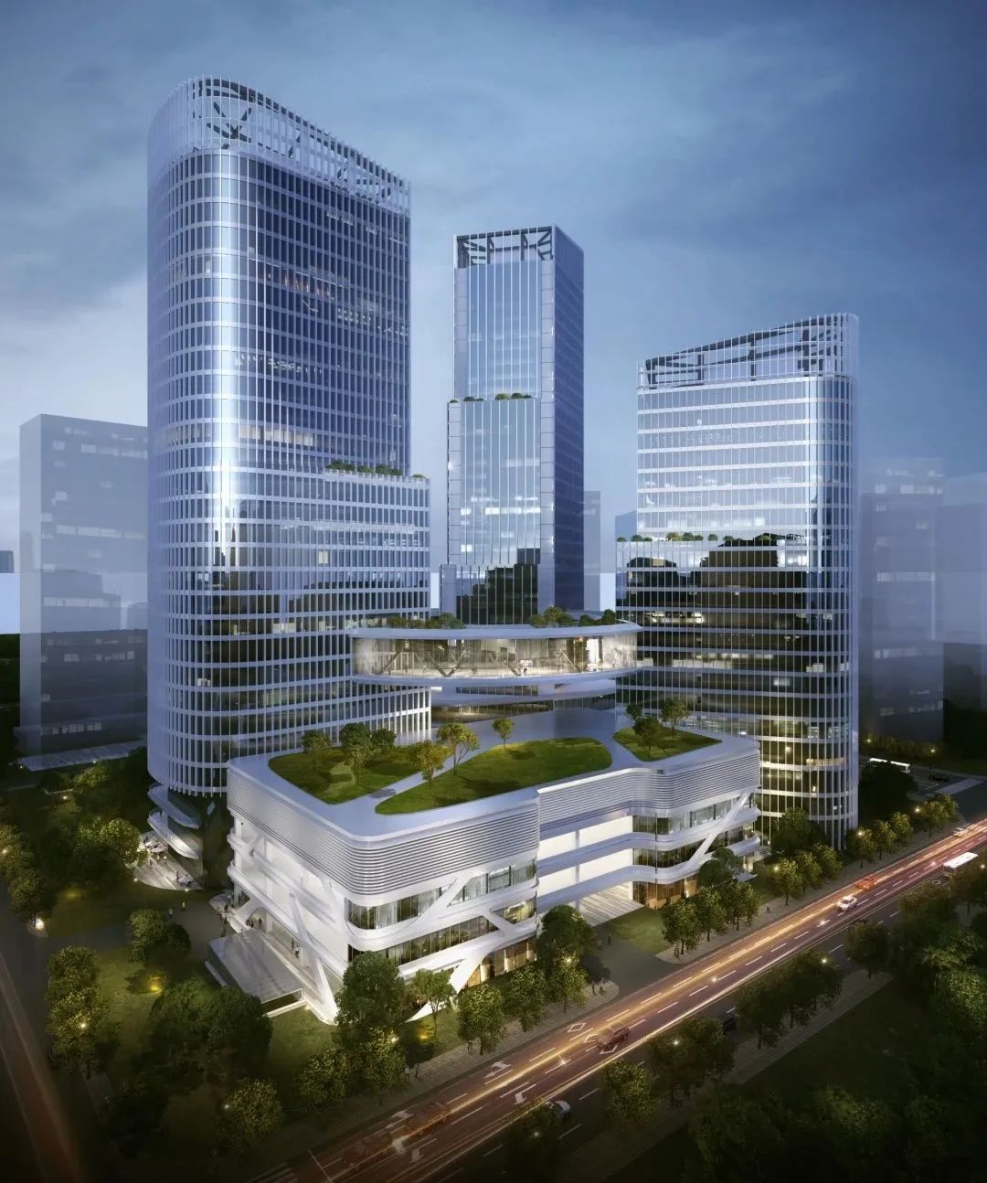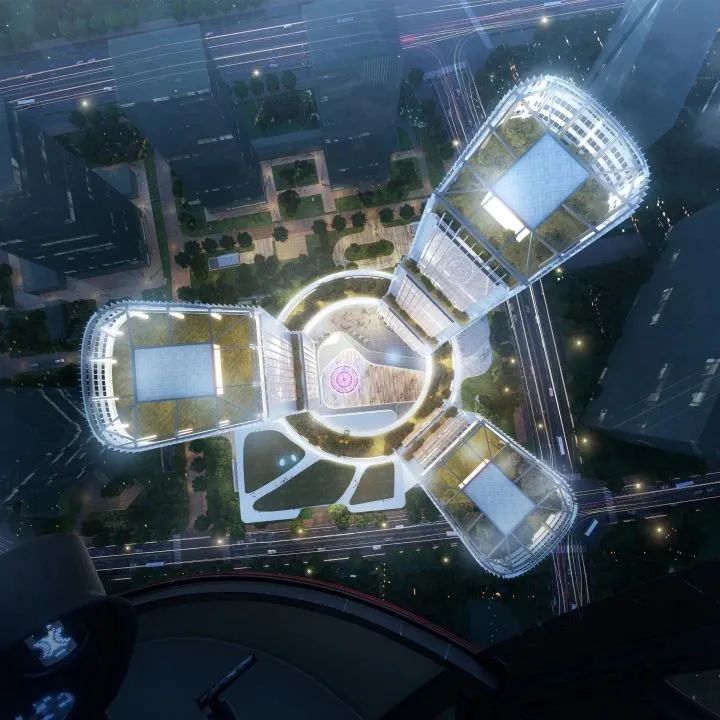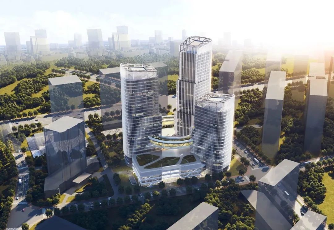 该项目是集商业、商务、公共交通场站于一体的综合体建筑,由两栋超高层塔楼、一栋高层塔楼、商业裙房以及一个公交场站组成。