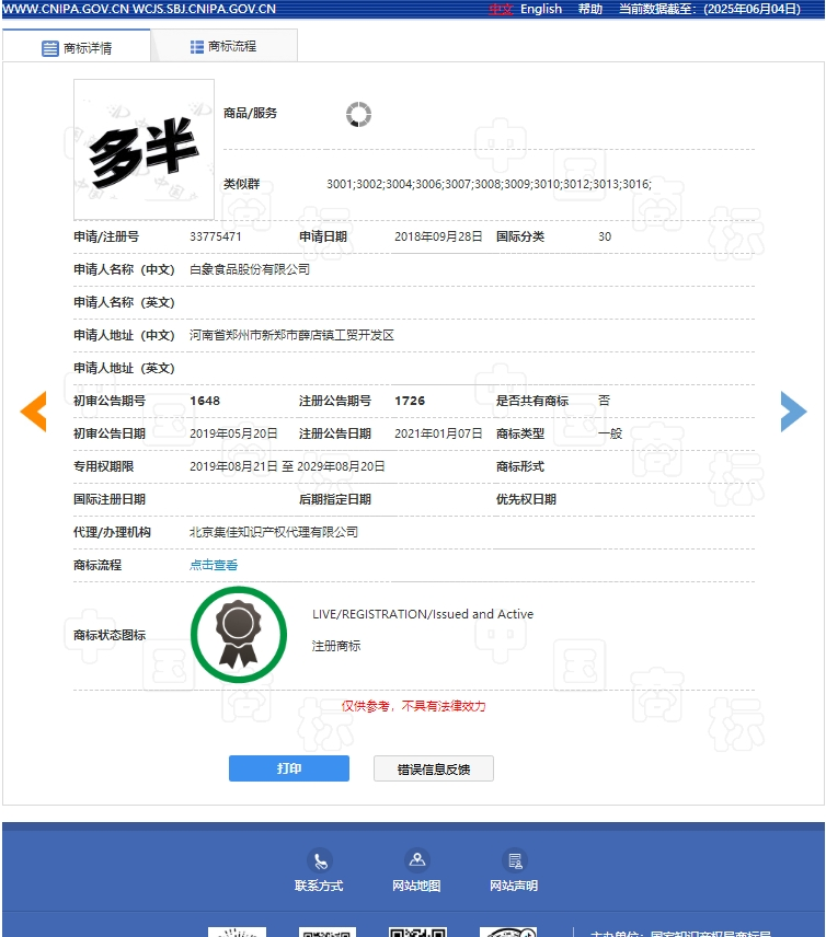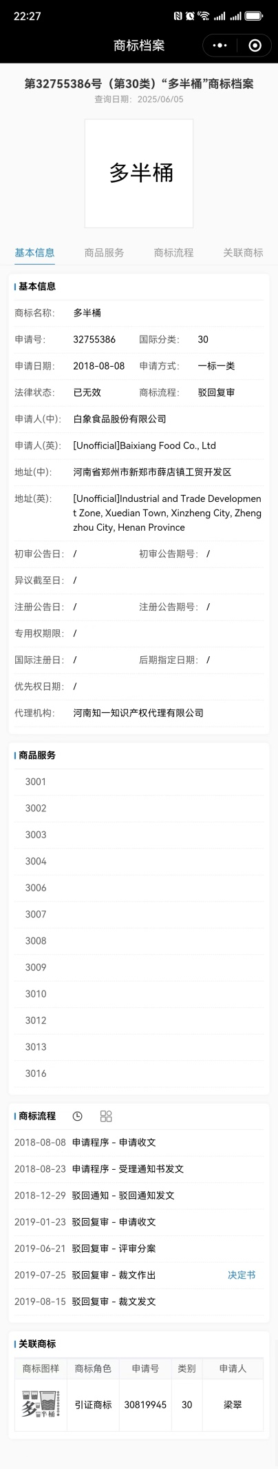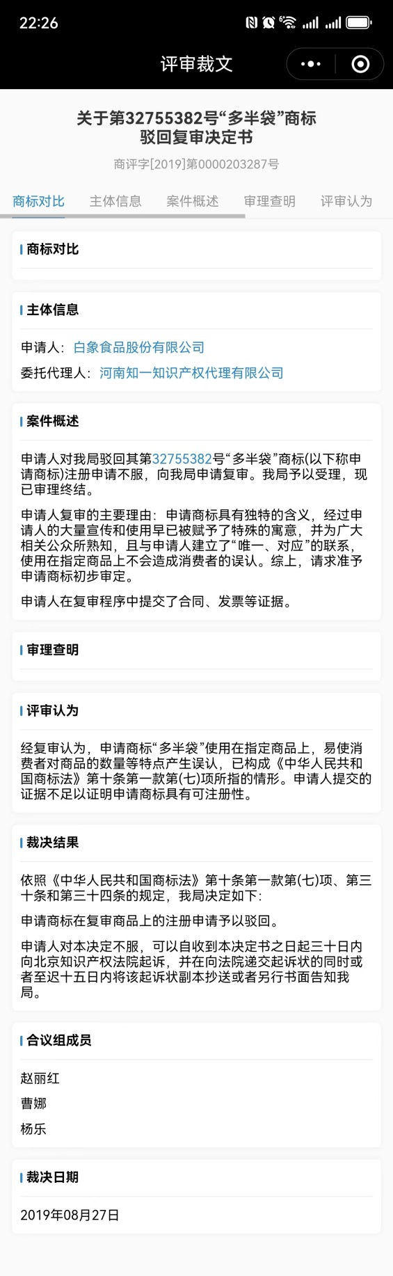 王幽:从法律程序看,白象食品“多半”商标的注册流程符合《商标法》的形式要求。