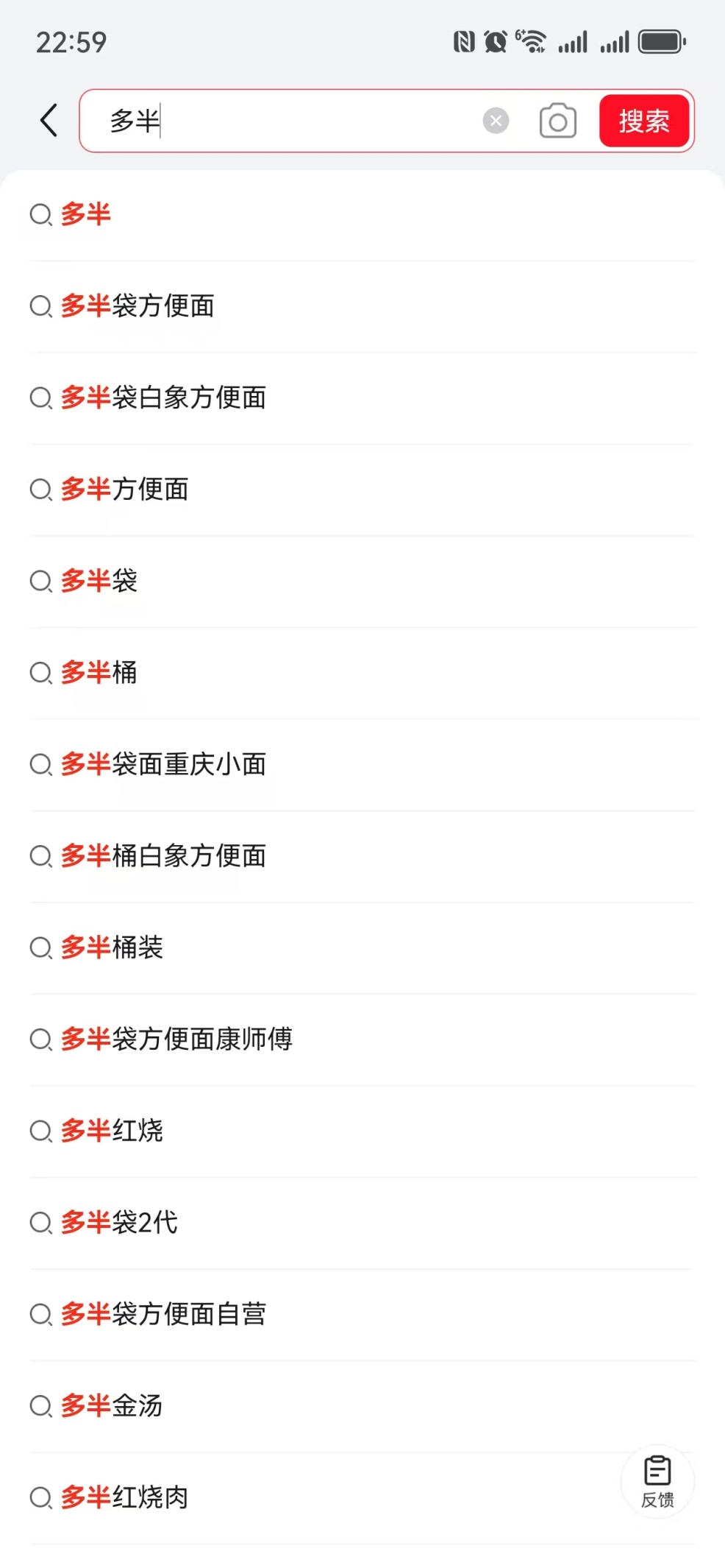 目前在京东等网络购物平台输入“多半”“多半袋”等关键词时,直接显示白象产品,表明该商标使用方式已在客观上导致消费者将“多半袋”视为产品属性描述而非商标。这种实际消费场景中的认知混淆,强化了误导性使用的证据链。