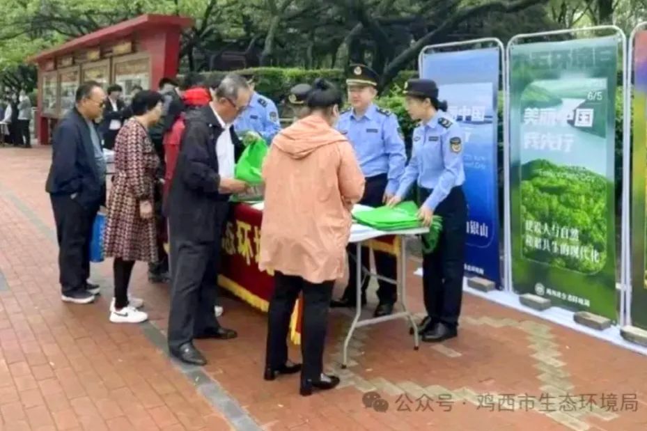 鸡西市集结20家生态环境保护委员会成员单位在红旗路开展集中宣传活动。通过悬挂横幅、摆放知识展板、发放宣传手册等方式向过往市民普及环保相关法律法规知识,设立展台20个,发放传单2万余份,环保购物袋9000余个,为美丽鸡西建设注入全民动力。
