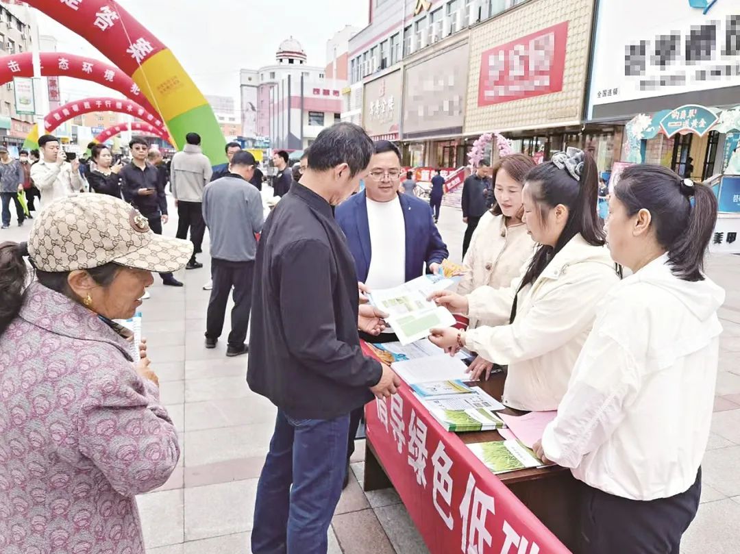 七台河市生态环境局在桃山区步行街,通过设置展板,集中展示环保知识、普及成果和环保工作成效,向过往市民发放环保宣传材料,耐心细致地解答市民关于生活垃圾分类、大气污染治理等方面的疑问,向市民详细讲解环保法律法规和日常生活中践行低碳环保理念的具体做法。