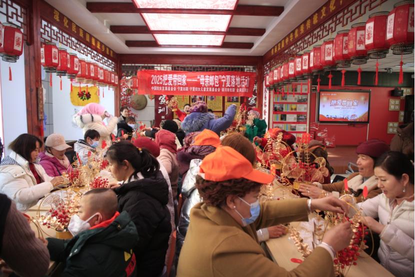 在宁夏回族自治区,银川市的活动上安排了花篮制作体验,各族姐妹在社工的带领下学习制作非遗花篮,用手工表达对生活的美好心愿。