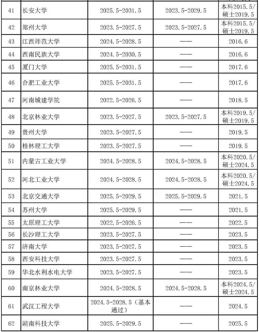2025年参加并通过专业评估的院校分别是(以审议顺序为序):