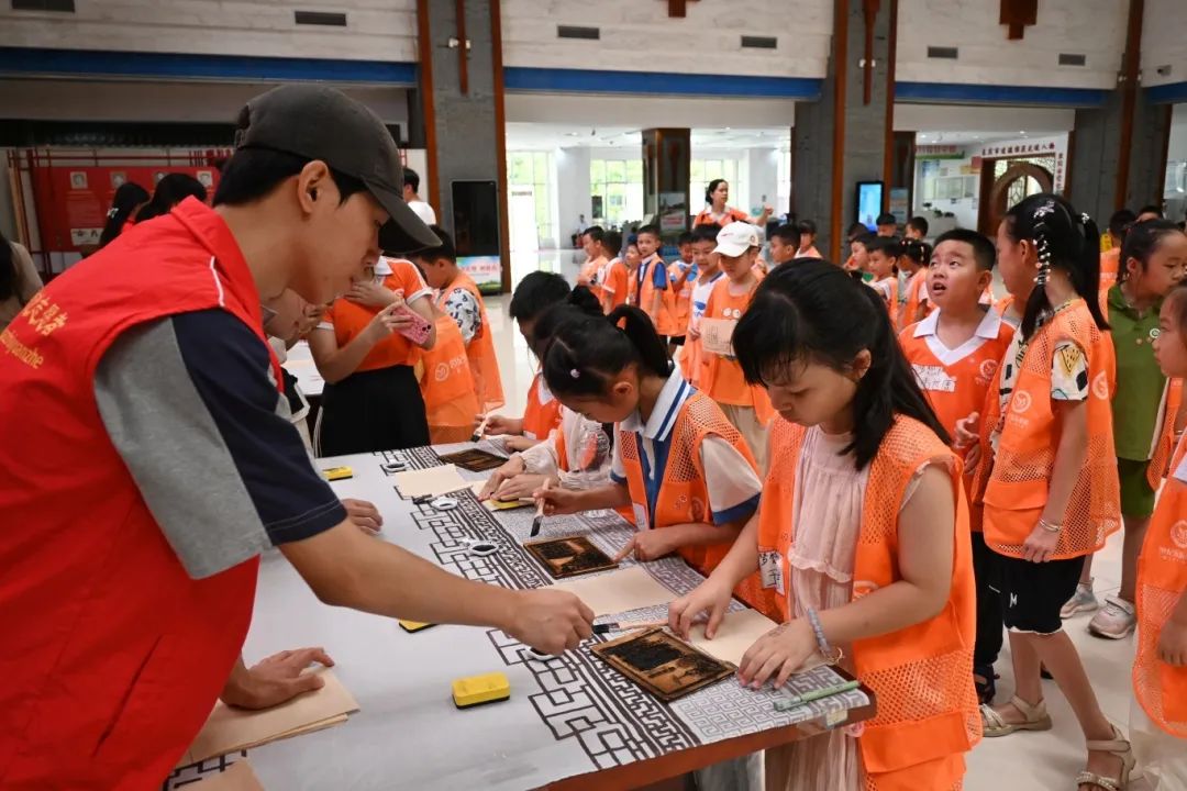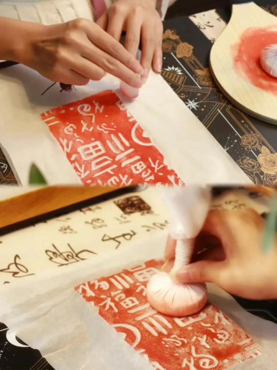 随后开展“墨香千年”活字拓印体验,在志愿者的细致指导下,大家亲自动手拓印文字。墨色晕染间,墨香弥漫了全场,这门古老的技艺在指尖焕发出新的生机与温度,游客纷纷表示:“原来拓印这么有趣!”