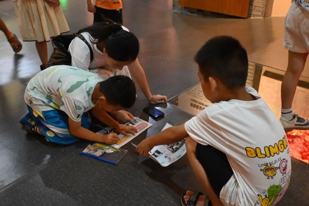 在讲解员生动细致的引导下,孩子们手持答题卡,穿梭在展厅中,认真观察展品、积极答题,争分夺秒寻找线索。通过自主探索与认真学习,激发了孩子们的好奇心,增加了文化知识储备。