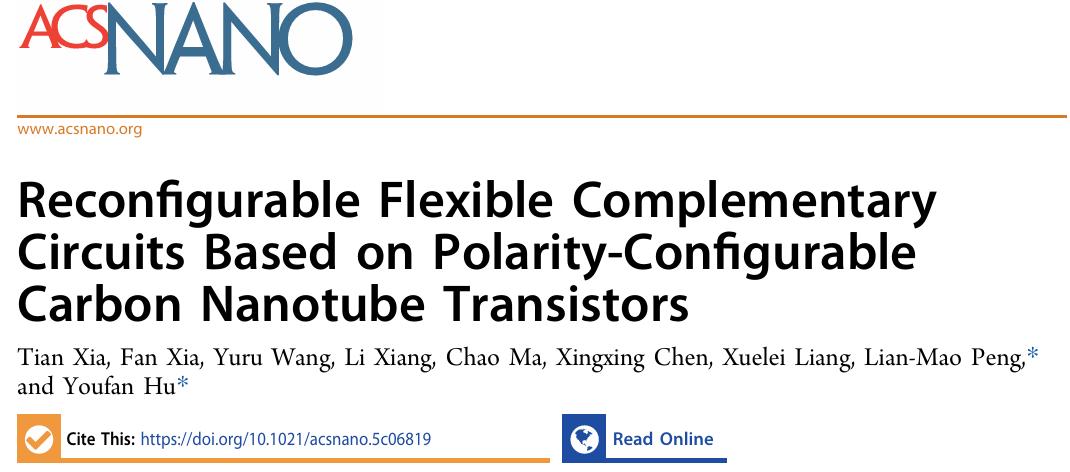 · 提出了一种基于碳纳米管(CNT)的可重构柔性互补电路,通过可逆电静电掺杂技术实现场效应晶体管(TFT)的P/N极性配置,解决了传统CMOS电路中极性固定的问题。