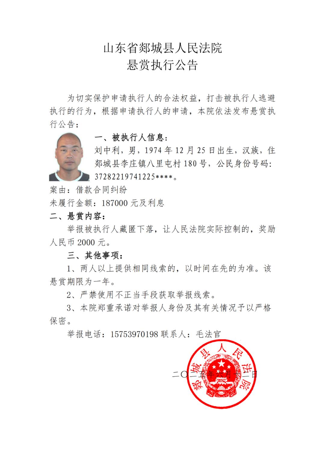 原标题:《【悬赏公告】郯城县人民法院悬赏执行公告(二〇二五年第四十期)》