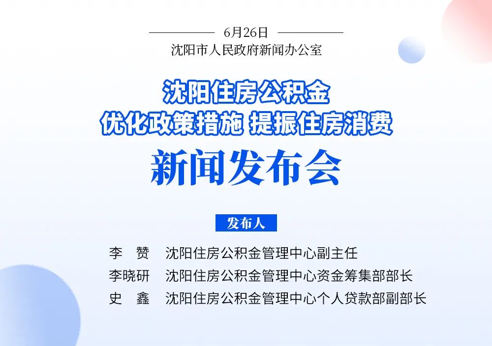 为贯彻落实中办、国办关于《提振消费专项行动方案》有关要求,进一步提振沈阳住房消费,经沈阳住房公积金管理委员会审议通过,2025年7月1日起优化6项住房公积金政策措施,具体内容发布如下:
