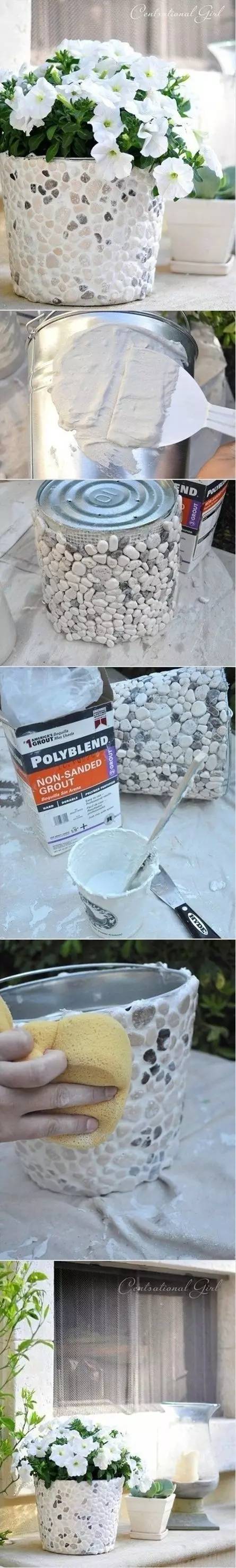 ▼有艺术追求的朋友可以给铁罐的表面铺上小石子,典雅得不得了。