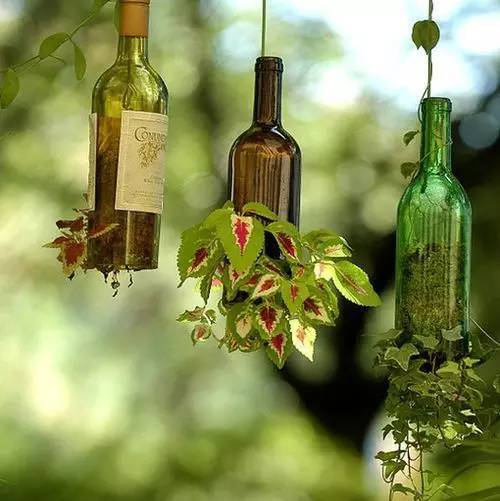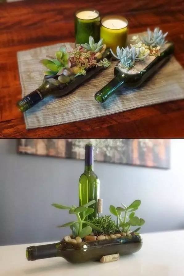 ▼红酒瓶身切个剖面就可以种些多肉植物,浪漫有情调。