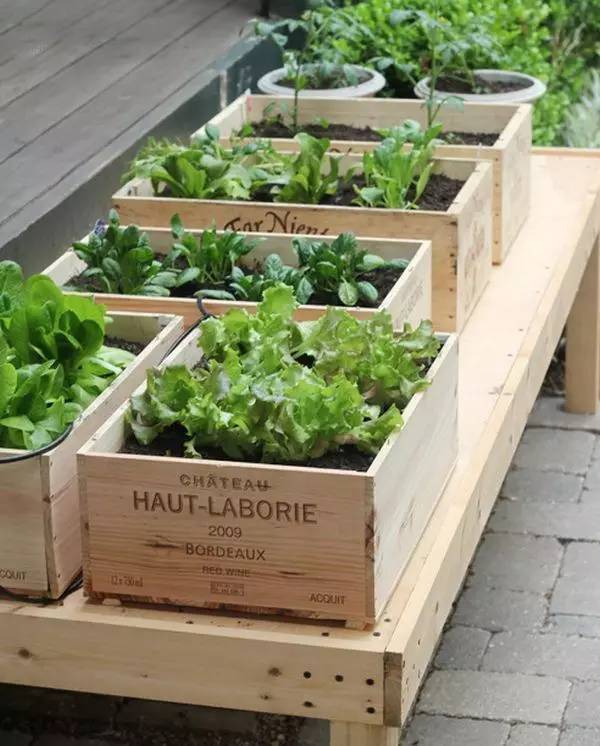 ▼木质集装箱种菜盆,透过屏幕都感受到了清新的味道。