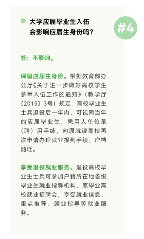 对应征入伍的普通高校毕业生、毕业班学生、在校生,由中央财政实施相应的学费补偿和国家助学贷款代偿。当年已被高校录取的高中毕业生入伍后保留入学资格,退役后享受国家学费减免政策。
