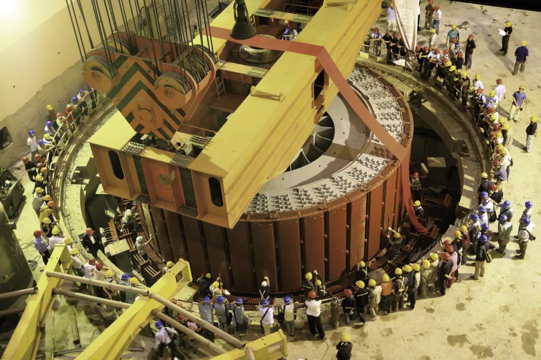 △2009年5月28日,小湾水电站1号机组转子吊装成功。