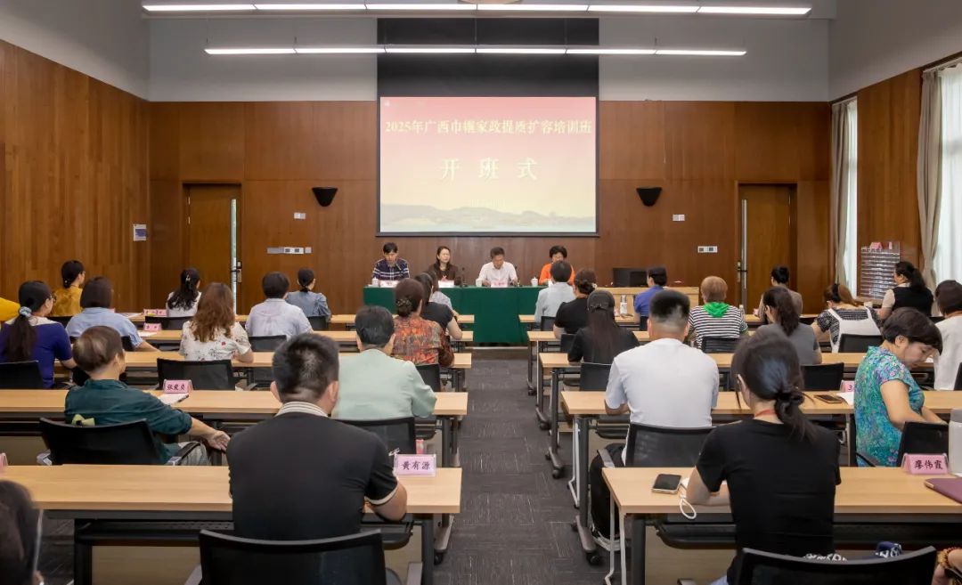 为加强巾帼家政高素质人才队伍建设,促进妇女在家政服务领域就业创业,推动巾帼家政服务高质量发展,6月23日—26日,自治区妇联在广西百色干部学院举办广西巾帼家政提质扩容培训班。来自广西金绣球巾帼家政服务联盟会员单位的近50名家政骨干参加培训,广西百色干部学院副院长高怡松出席开班仪式并致辞,自治区妇联党组成员、副主席朱玉红出席开班仪式并讲话。