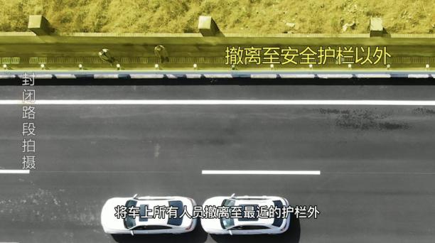 无论车辆能否移动,驾乘人员都不能在车内停留,应该迅速转移至应急车道护栏外,并面向来车方向。