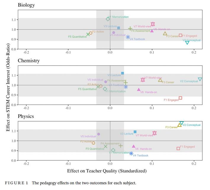 1. 作者验证了科学教育领域一个常见假设:某些课堂教学方法可能具有双重效应——既能提升学生对教师教学质量的评价,又能增强其对STEM职业的兴趣。