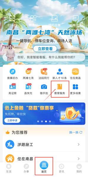 首页点击“教育服务”