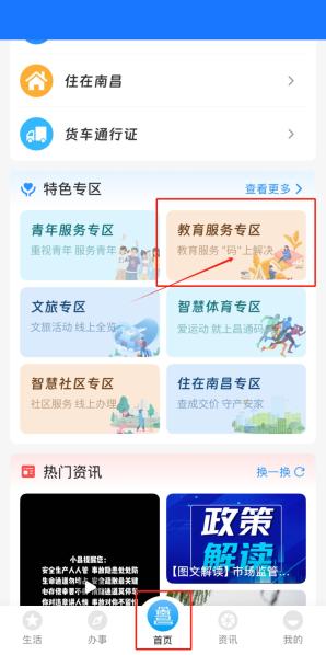 或下滑至“教育服务专区”